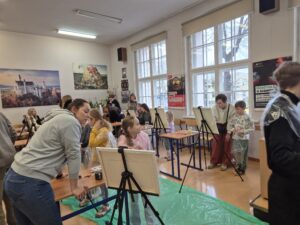 Szczególną popularnością cieszył się konkurs malarski, poprzedzony wykładem Pana Cezarego Zbrojewskiego na temat technik malarskich. Artysta udzielał uczestnikom cennych wskazówek, a następnie – wspólnie z organizatorkami – wybrał najciekawsze prace.
