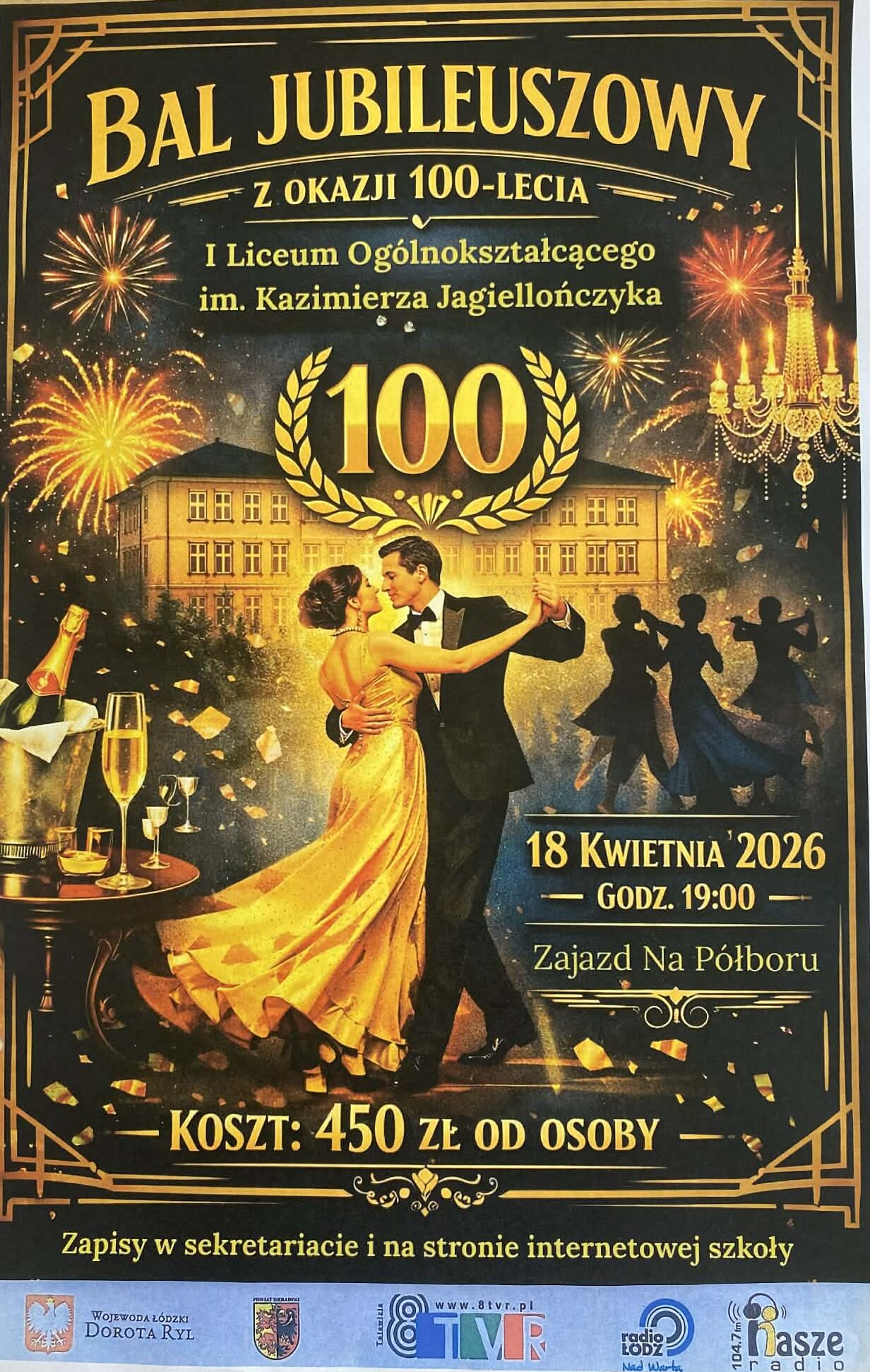 Z okazji wyjątkowego jubileuszu 100-lecia istnienia naszej Szkoły mamy zaszczyt zaprosić Absolwentów, Pracowników, Emerytowanych Nauczycieli oraz Przyjaciół Szkoły na Bal Jubileuszowy, który będzie uroczystym zwieńczeniem obchodów tego niezwykłego wydarzenia.