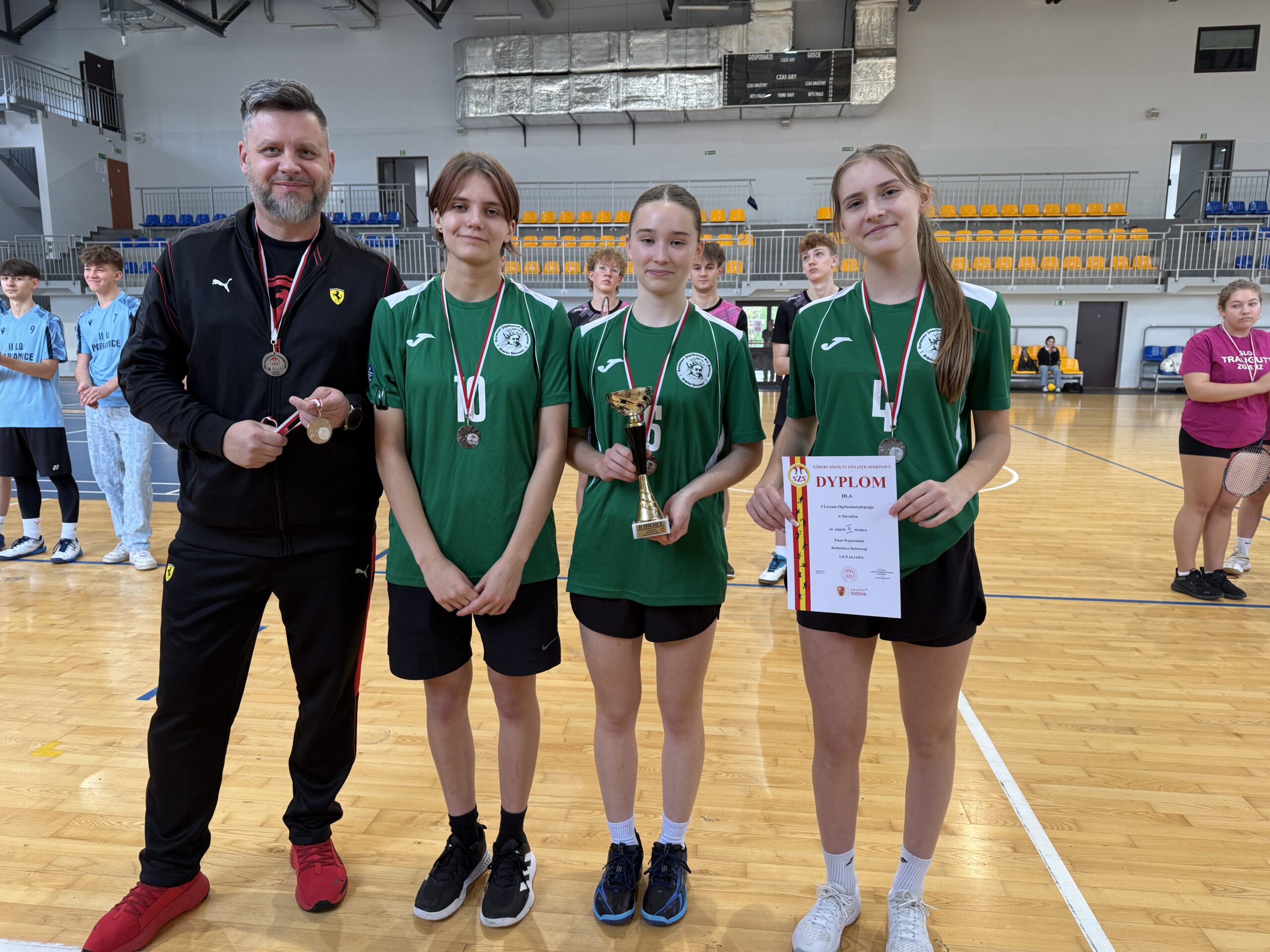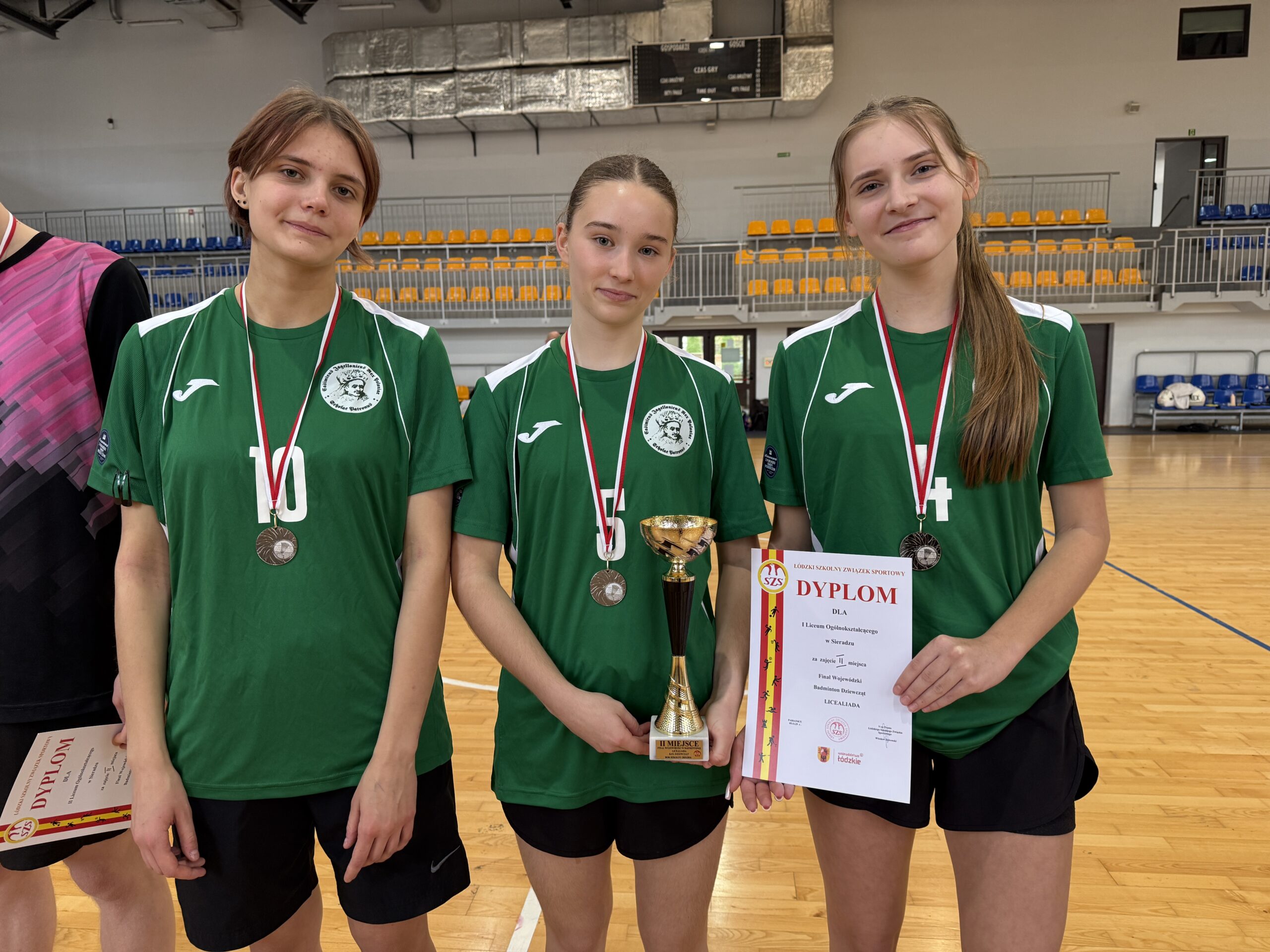 W środę 5 listopada 2025 roku zawodniczki naszego liceum zajęły II miejsce w Finale Województwa Łódzkiego w badmintonie. Zawody odbyły się w Powiatowej Hali Sportowej w Pabianicach. Nasza drużyna w składzie: Zofia Miedzińska, Matylda Sałuda i Hanna Stodulska w fazie grupowej pokonały drużyny ze Zgierza 3:2, Wielunia 3:2 i Opoczna 3:1. W półfinale nasze dziewczyny pokonały drużynę z Łęczycy 3:0. W finale nasza drużyna uległa zawodniczkom gospodarzy z Pabianic 0:3. Poziom zawodów był wysoki i wyrównany. Nasze zawodniczki zostawiły na kortach kawał serducha i 100% zaangażowania. Na koniec rywalizacji dziewczęta odebrały medale, puchar i pamiątkowy dyplom.