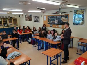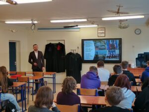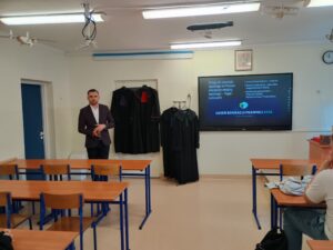 Omówiono również ścieżkę kariery prawniczej – jak zostać sędzią, jakie cechy powinien posiadać sędzia (m.in. bezstronność, odpowiedzialność, uczciwość, odporność na stres) oraz jakie kierunki studiów należy wybrać.