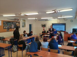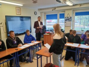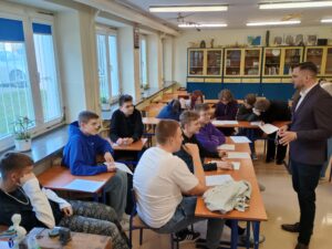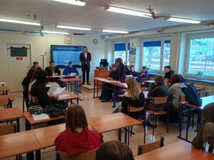 Podczas warsztatów przeprowadzono również symulację rozprawy sądowej, dzięki której uczniowie mogli poznać przebieg procesu oraz wcielić się w role jego uczestników.