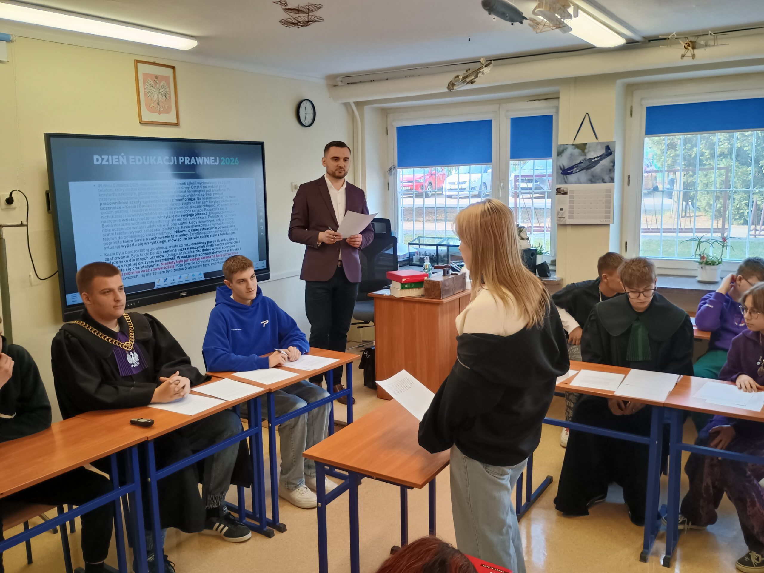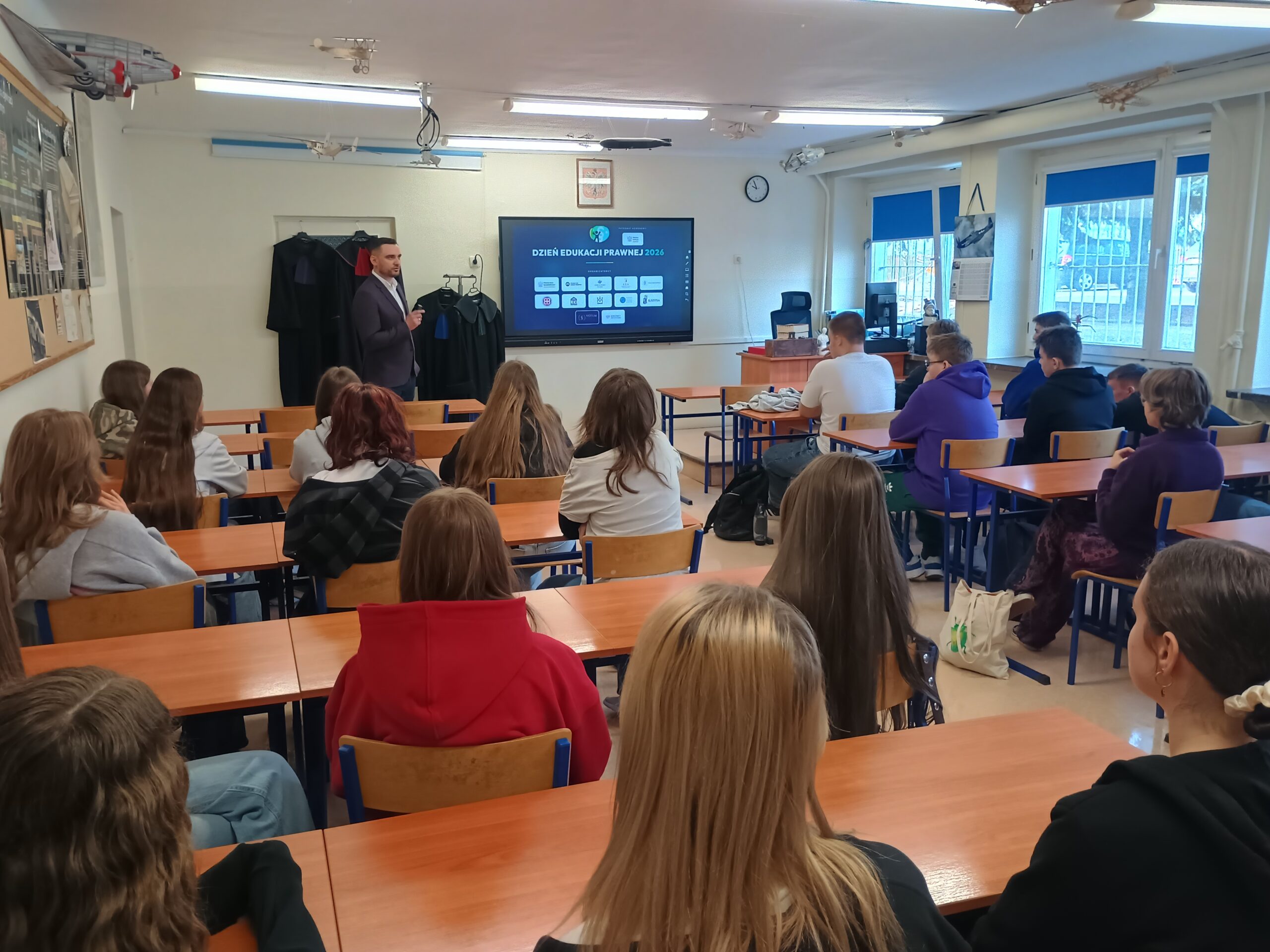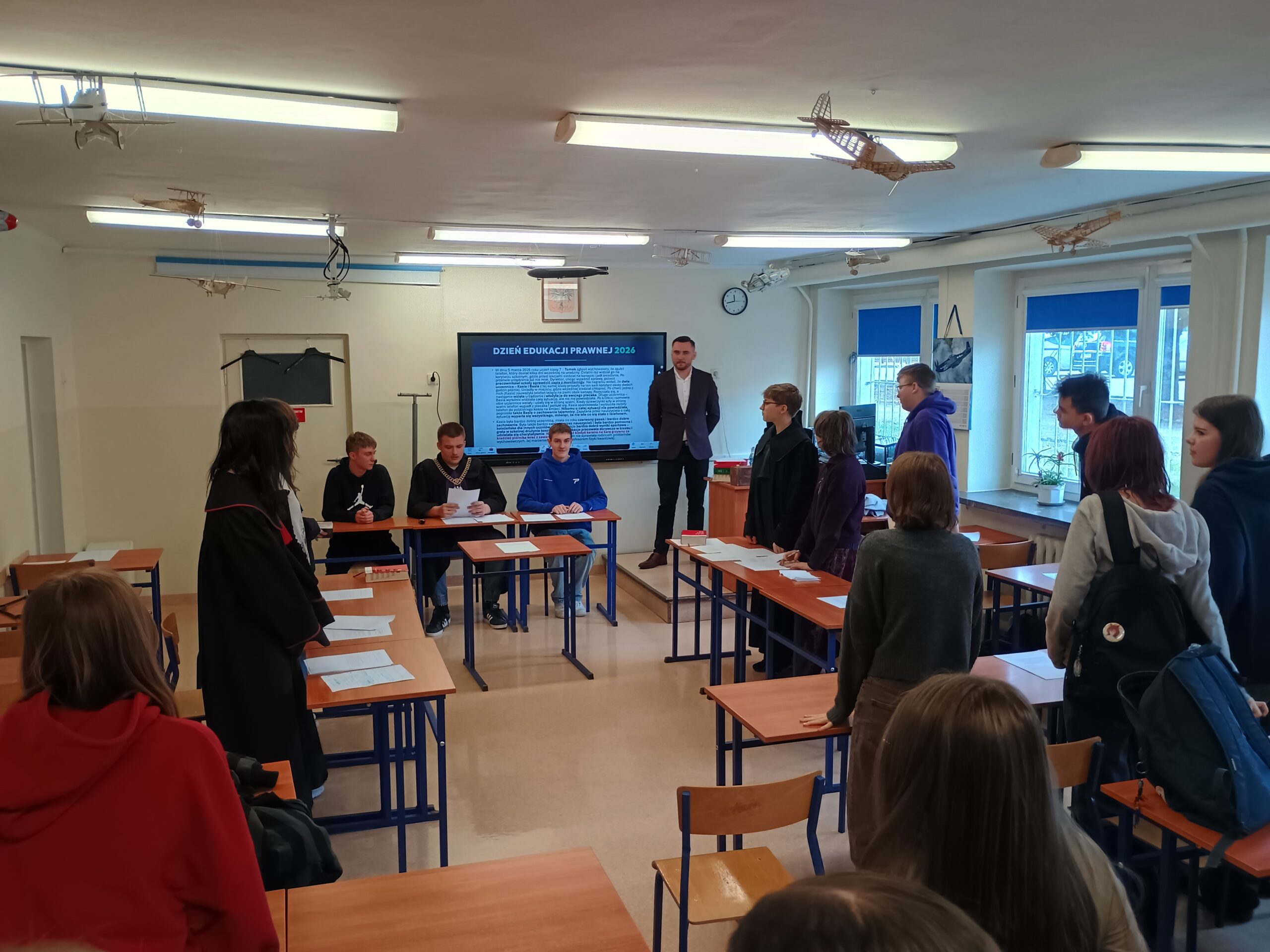 Omówiono również ścieżkę kariery prawniczej – jak zostać sędzią, jakie cechy powinien posiadać sędzia (m.in. bezstronność, odpowiedzialność, uczciwość, odporność na stres) oraz jakie kierunki studiów należy wybrać.