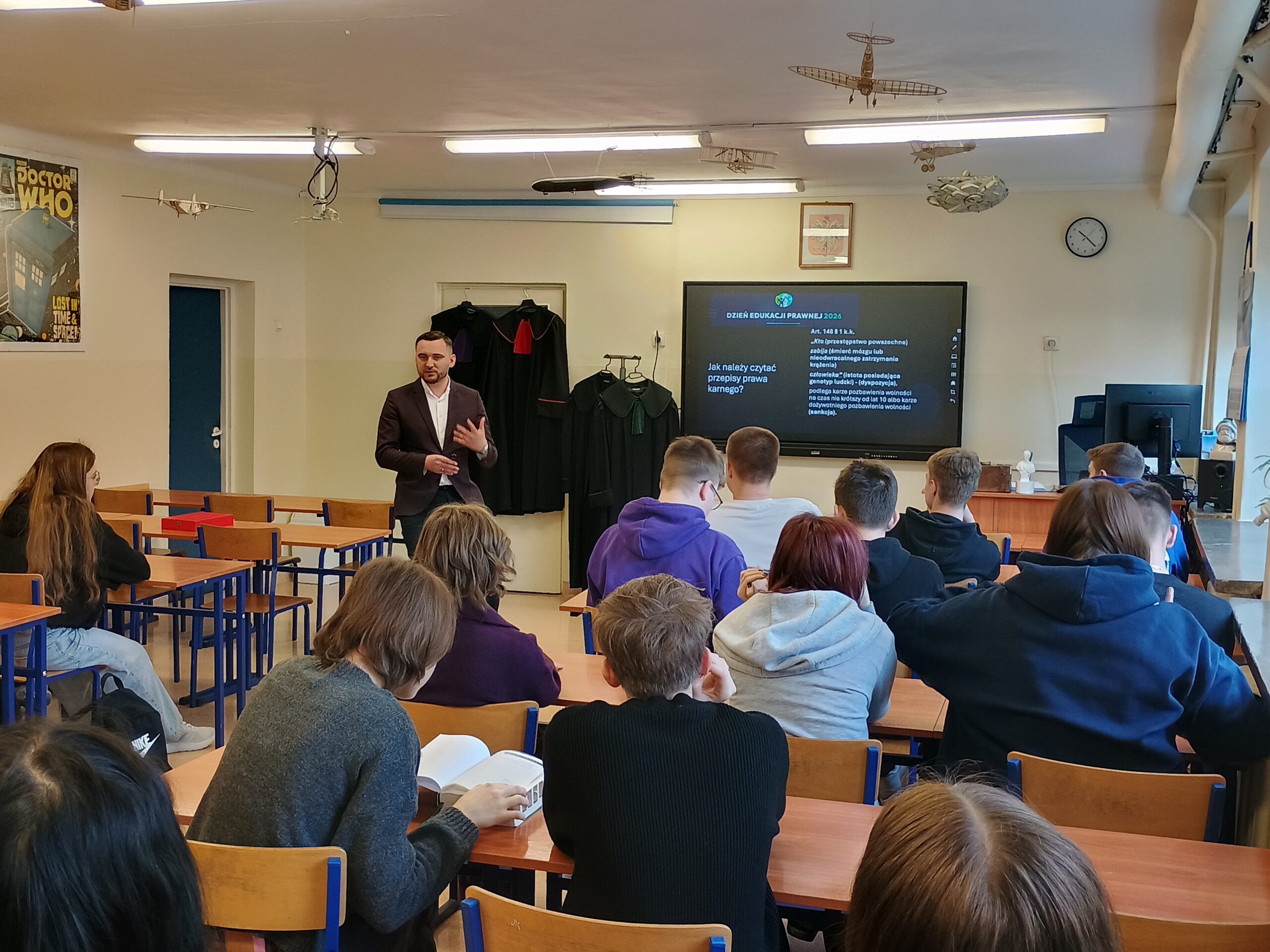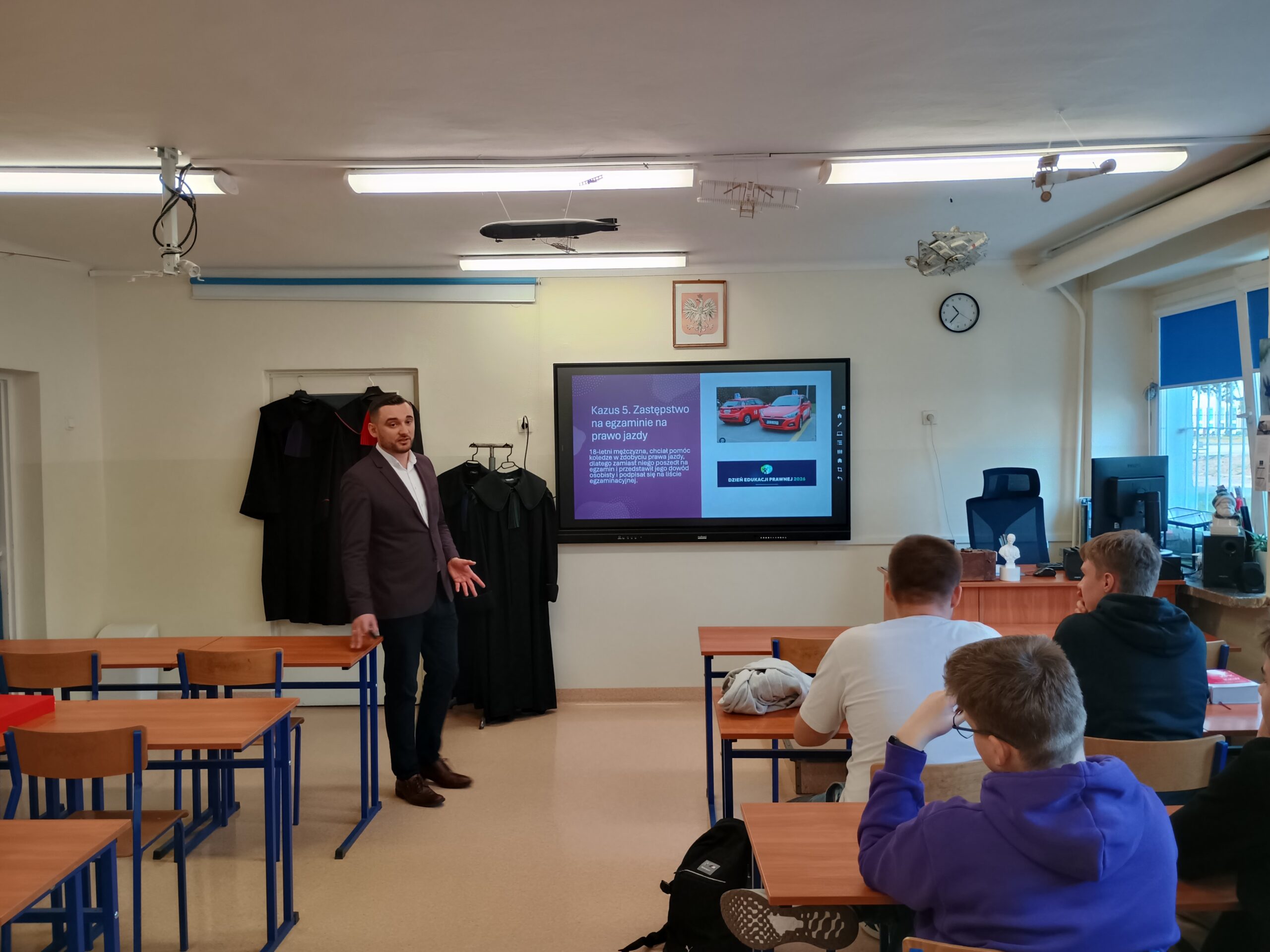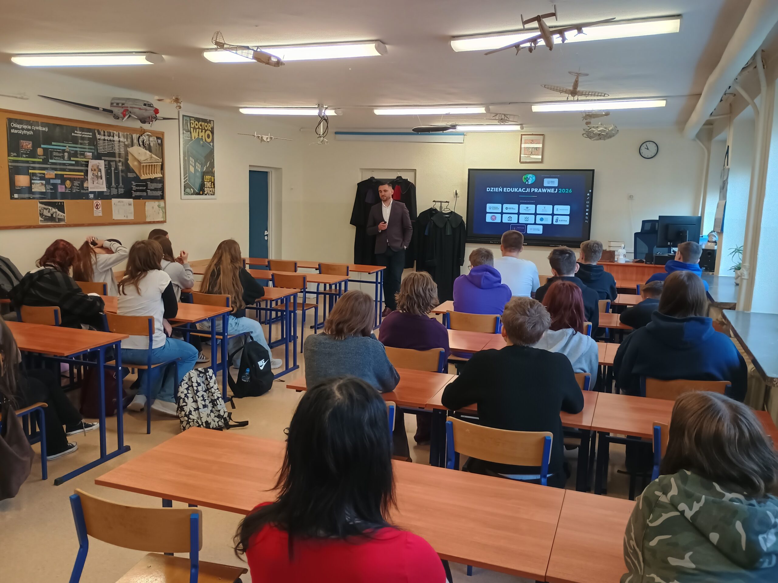 Omówiono również ścieżkę kariery prawniczej – jak zostać sędzią, jakie cechy powinien posiadać sędzia (m.in. bezstronność, odpowiedzialność, uczciwość, odporność na stres) oraz jakie kierunki studiów należy wybrać.