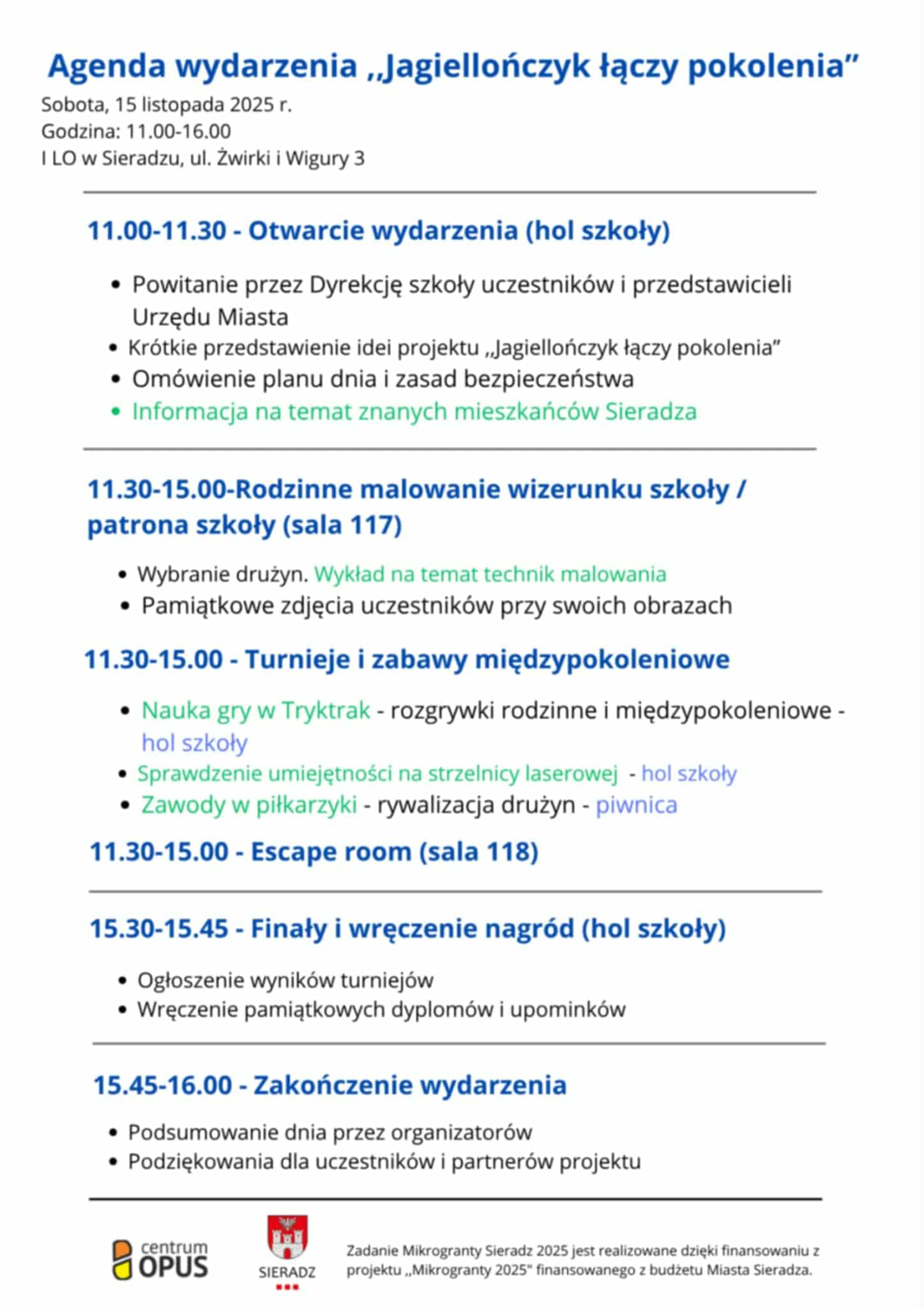Mieszkańcy Sieradza zapraszamy w najbliższa sobotę 15 listopada na wydarzenie „Jagiellończyk łączy pokolenia”