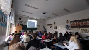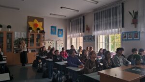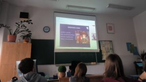 Uczniowie wysłuchali niezwykle interesującego wykładu o genezie, zwyczajach i bohaterach „Wesela”, a następnie uczestniczyli w części praktycznej, rozwiązując ćwiczenia dotyczące stylizacji gwarowej.