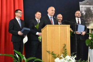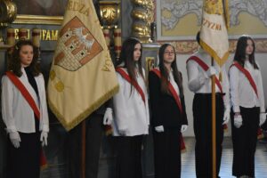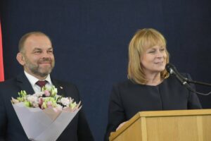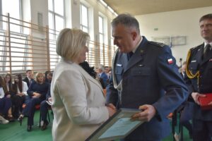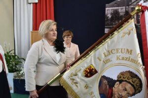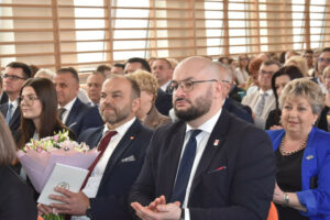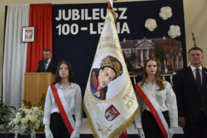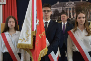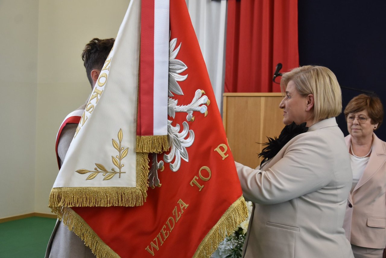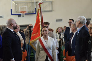 Jednym z najważniejszych momentów było uroczyste przekazanie nowego sztandaru na ręce dyrektor szkoły. Rodzicami chrzestnymi sztandaru zostali Artur Bagieński oraz Agnieszka Paszkowska-Rogacz.