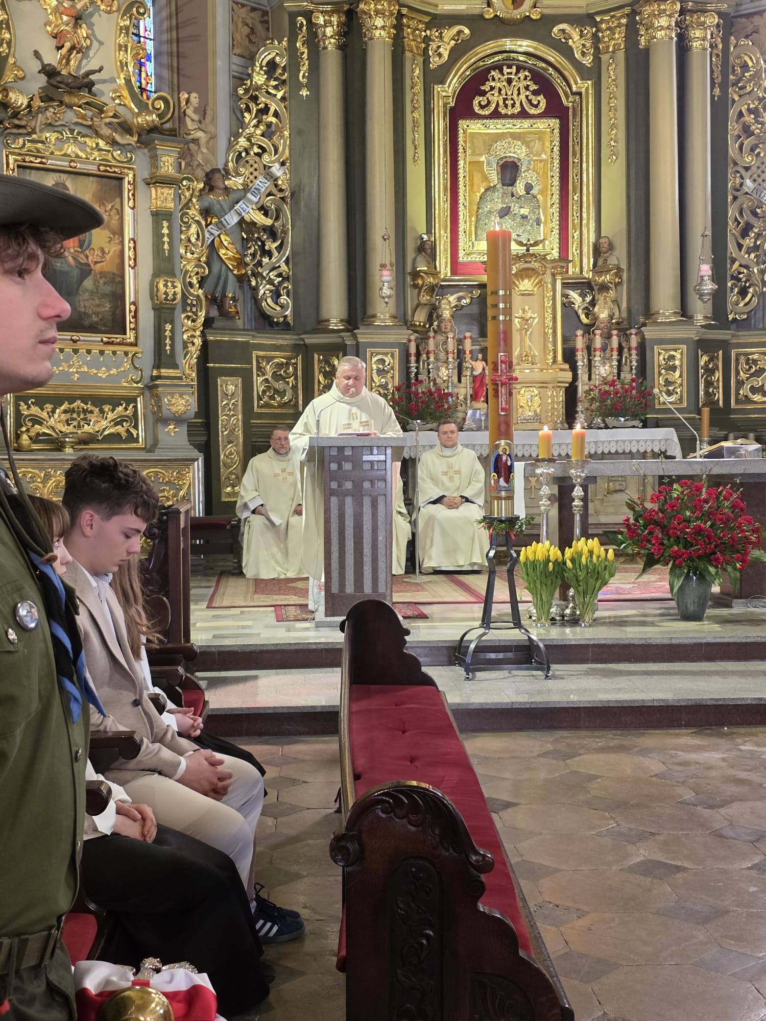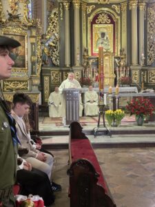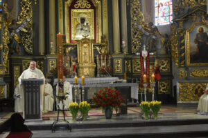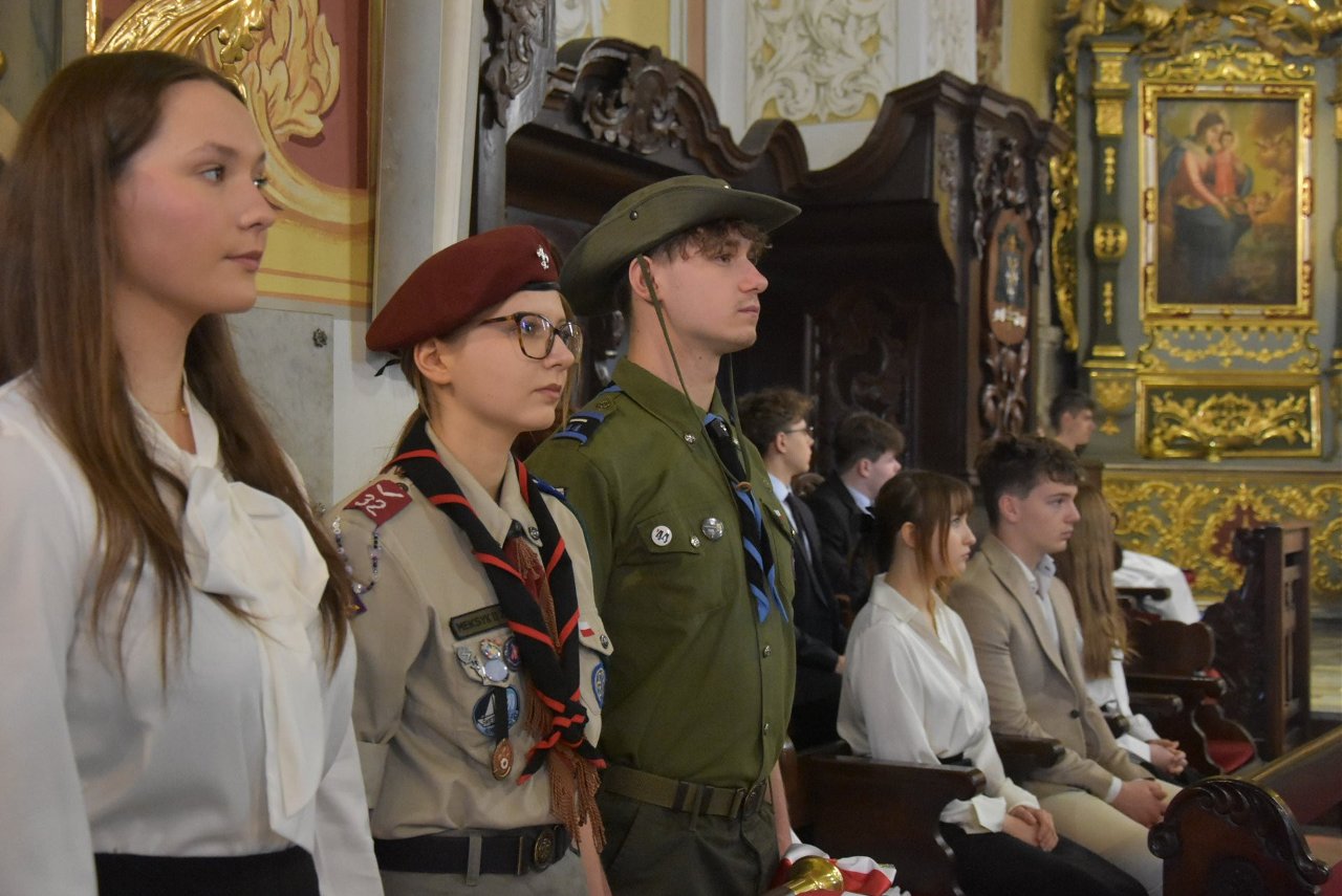 Główne uroczystości jubileuszowe rozpoczęły się mszą świętą w Bazylice Mniejszej w Sieradzu. Liturgii przewodniczył ksiądz infułat Marian Bronikowski, proboszcz parafii. W jej trakcie poświęcono nowy sztandar szkoły. Po zakończeniu nabożeństwa uczestnicy, w asyście wojskowej orkiestry dętej, przeszli w uroczystym przemarszu do budynku I Liceum Ogólnokształcącego im. Kazimierza Jagiellończyka w Sieradzu.