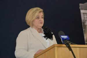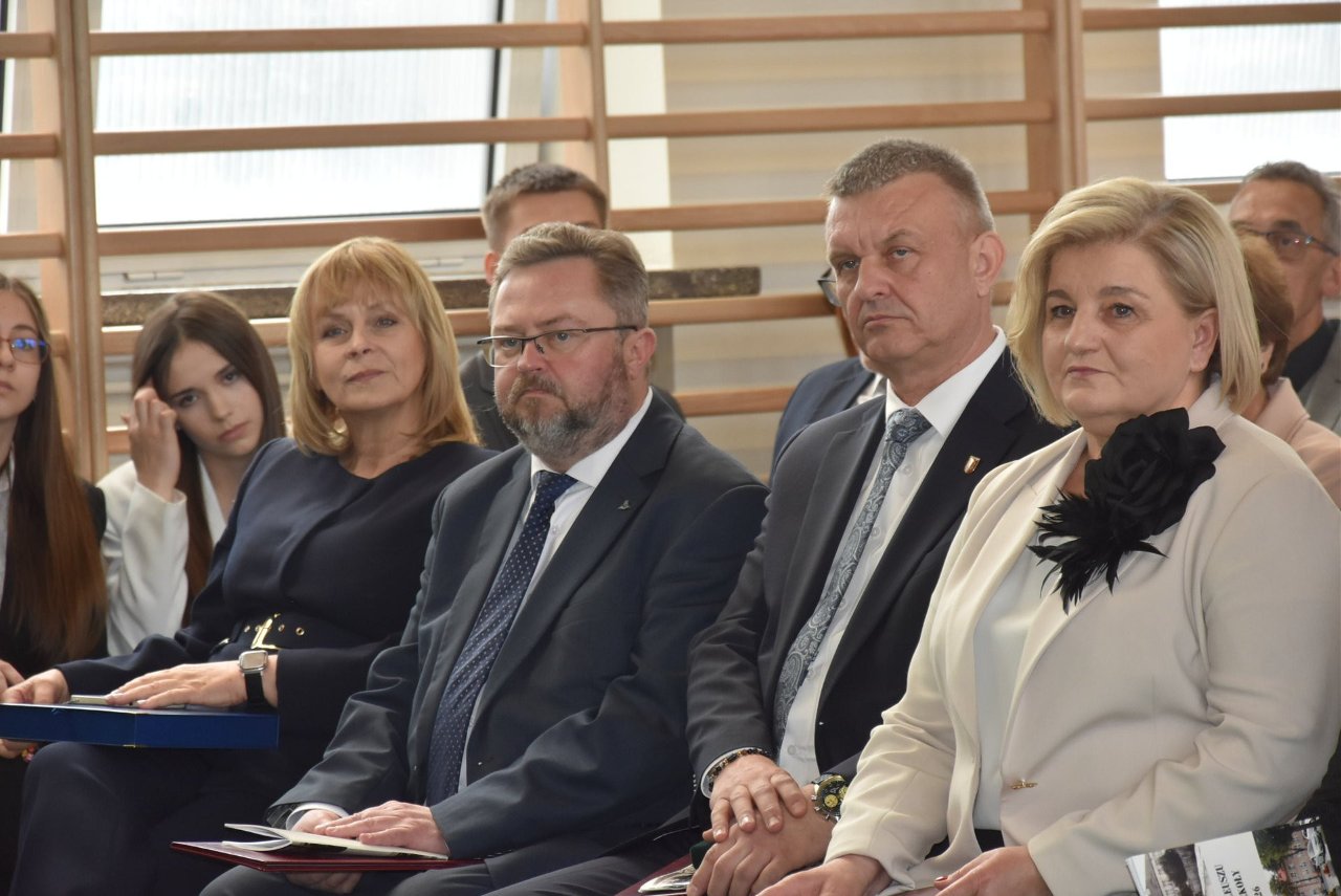 Oficjalną część w budynku szkoły otworzyła dyrektor placówki, Jowita Królikowska, która powitała zgromadzonych i przybliżyła historię liceum. Następnie głos zabrali zaproszeni goście, składając na ręce dyrektor gratulacje oraz przekazując kwiaty i okolicznościowe upominki.