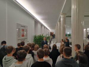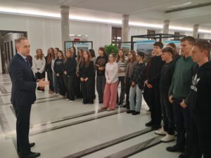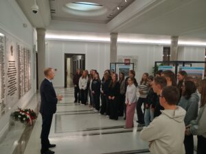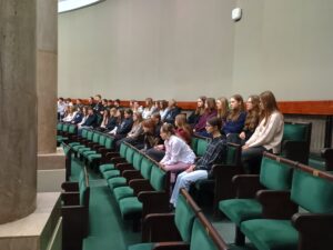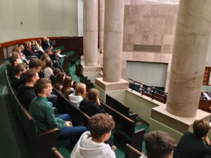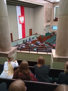 Głównym punktem wyjazdu do Warszawy była wizyta Sejmie RP. Uczniowie poznali historię parlamentaryzmu oraz zasady funkcjonowania władzy ustawodawczej w Polsce. Wizyta zbiegła się z obradami Sejmu, dzięki temu uczniowie mogli obserwować pracę posłów. W trakcie wizyty w Sejmie młodzież naszej szkoły spotkała się z posłem Cezarym Tomczykiem, wiceministrem w Ministerstwie Obrony Narodowej, który zaprosił uczniów do Sejmu. W trakcie rozmowy z posłem z naszego okręgu wyborczego uczniowie poznali tajniki pracy parlamentarzysty. Wycieczka do Sejmu była uzupełnieniem zajęć z Edukacji Obywatelskiej.