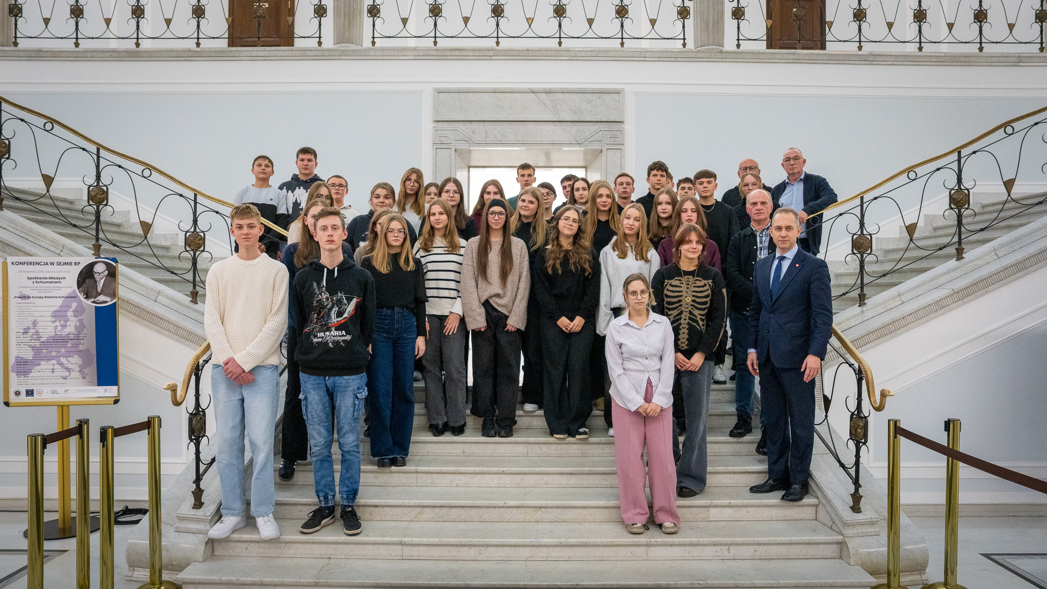 Głównym punktem wyjazdu do Warszawy była wizyta Sejmie RP. Uczniowie poznali historię parlamentaryzmu oraz zasady funkcjonowania władzy ustawodawczej w Polsce. Wizyta zbiegła się z obradami Sejmu, dzięki temu uczniowie mogli obserwować pracę posłów. W trakcie wizyty w Sejmie młodzież naszej szkoły spotkała się z posłem Cezarym Tomczykiem, wiceministrem w Ministerstwie Obrony Narodowej, który zaprosił uczniów do Sejmu. W trakcie rozmowy z posłem z naszego okręgu wyborczego uczniowie poznali tajniki pracy parlamentarzysty. Wycieczka do Sejmu była uzupełnieniem zajęć z Edukacji Obywatelskiej.
