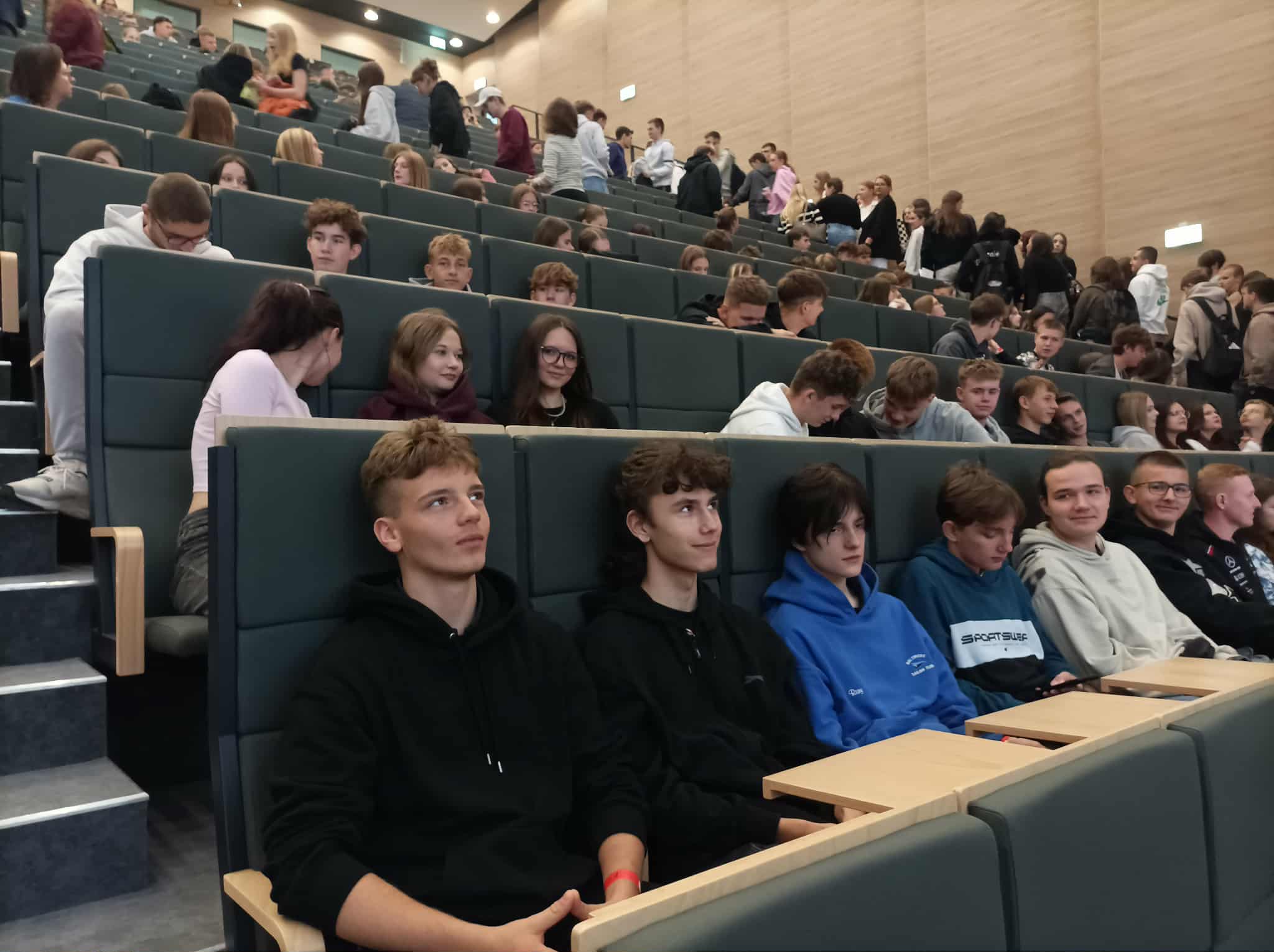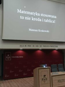 W nowoczesnej i ogromnej auli Alchemium uczniowie klasy 3D i 3E uczestniczyli w trzech wykładach popularyzujących matematykę i pokazujących jej nieograniczone zastosowania w wielu dziedzinach życia. Studenci z Kół Naukowych zaprezentowali efekty swoich działań – praktyczne wykorzystanie matematyki w robotyce, automatyce, fizjoterapii, mechanice.